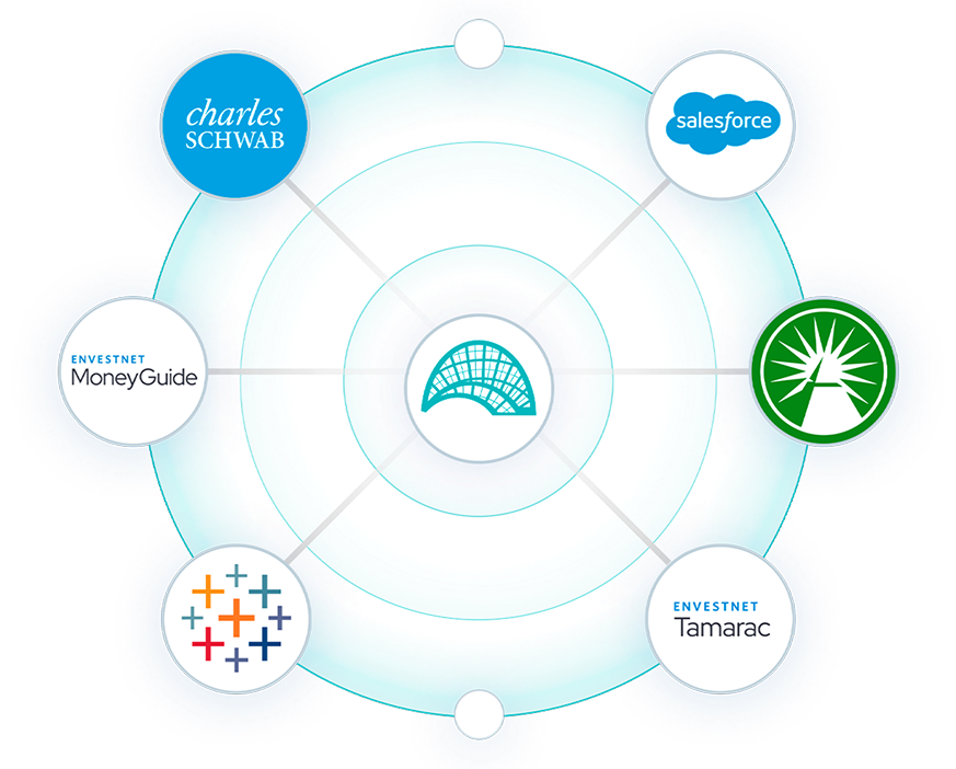 The solution incorporated data from critical platforms, including: Envestnet Tamarac, Envestnet MoneyGuidePro, Fidelity, Schwab and Salesforce financial services cloud.