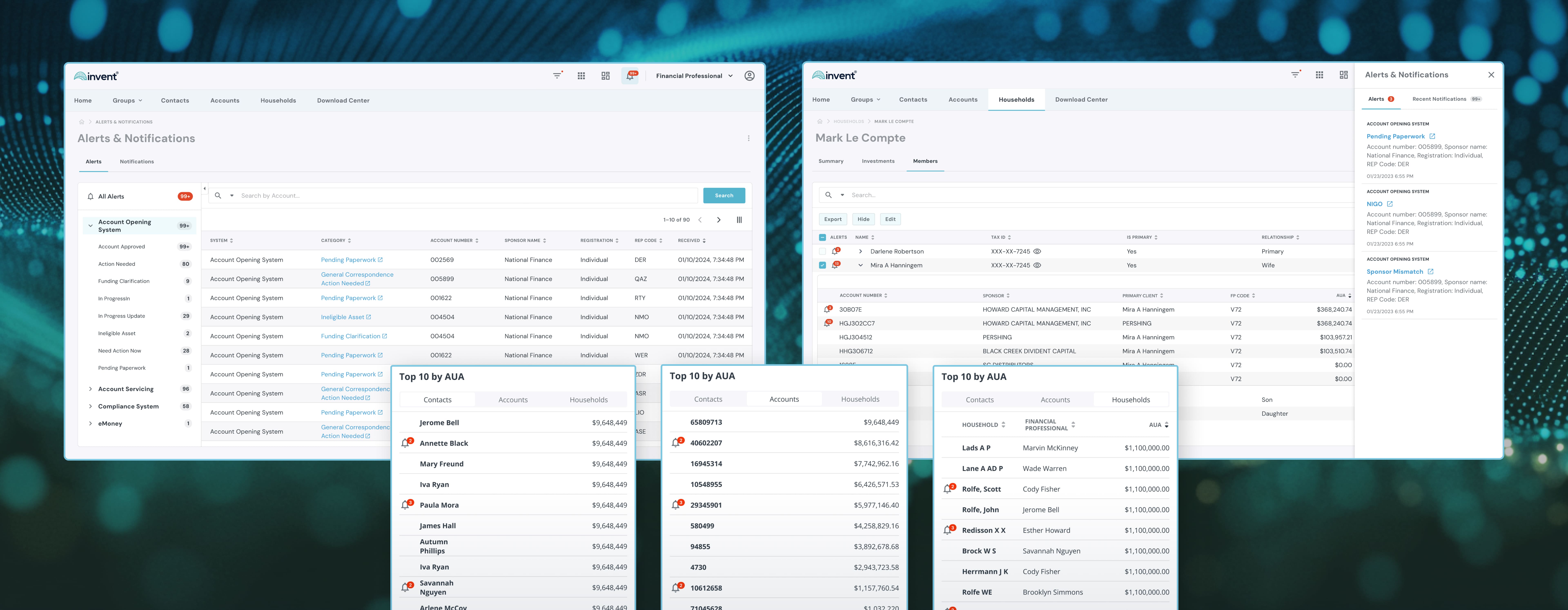 Unlike generic data solutions, INVENT is designed specifically for the needs of RIAs, broker-dealers, OSJs, and multi-custodian platforms. From AUM tracking to compliance reporting, rep code harmonization to householding logic—INVENT speaks the language of wealth management.